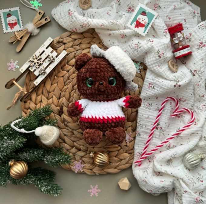 Игрушка вяжется одной деталью, пришивать ни чего не нужно, фиксируем только шапочку.